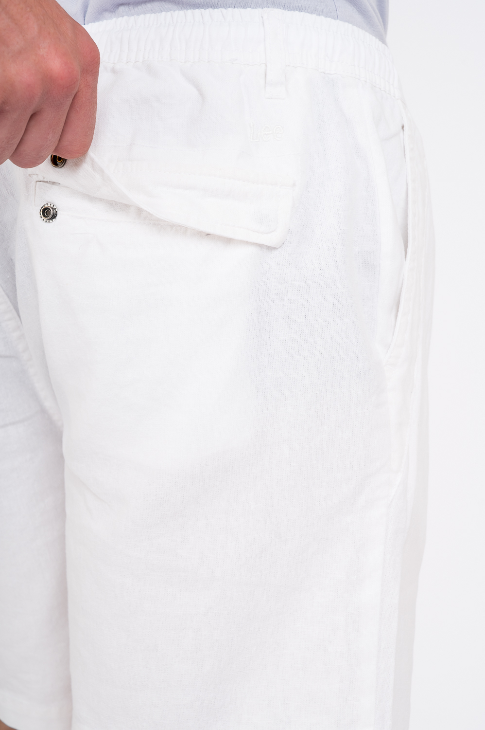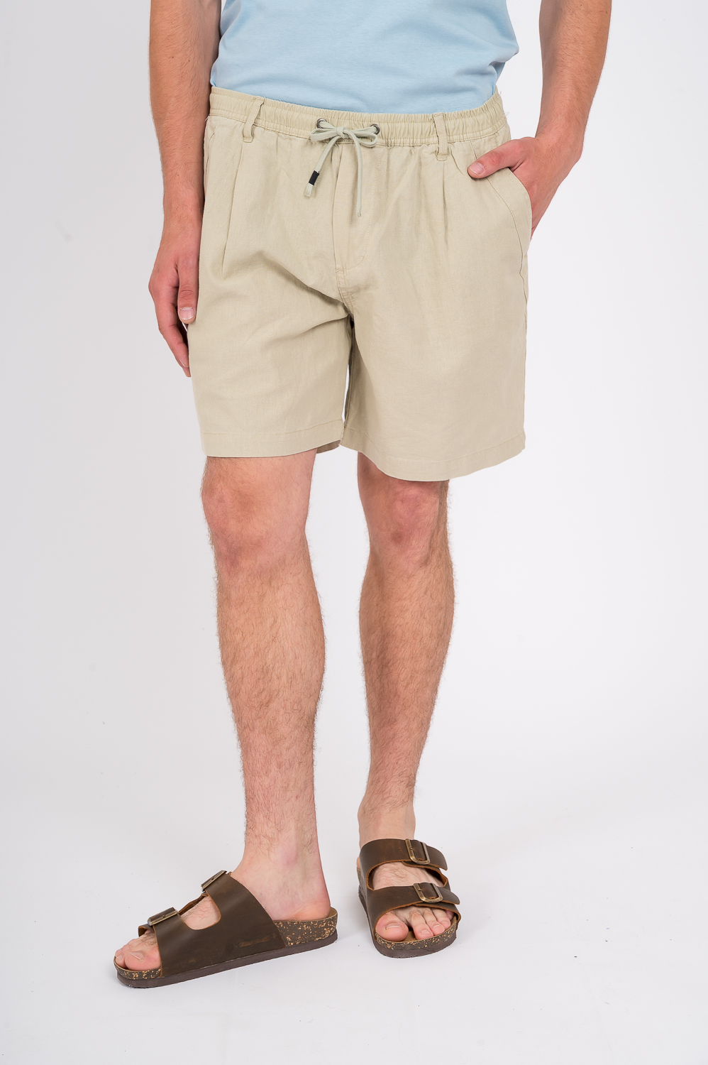 Bermuda de tiro medio confeccionada en lino. Tejido liviano, respirable y de tacto natural.