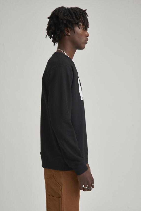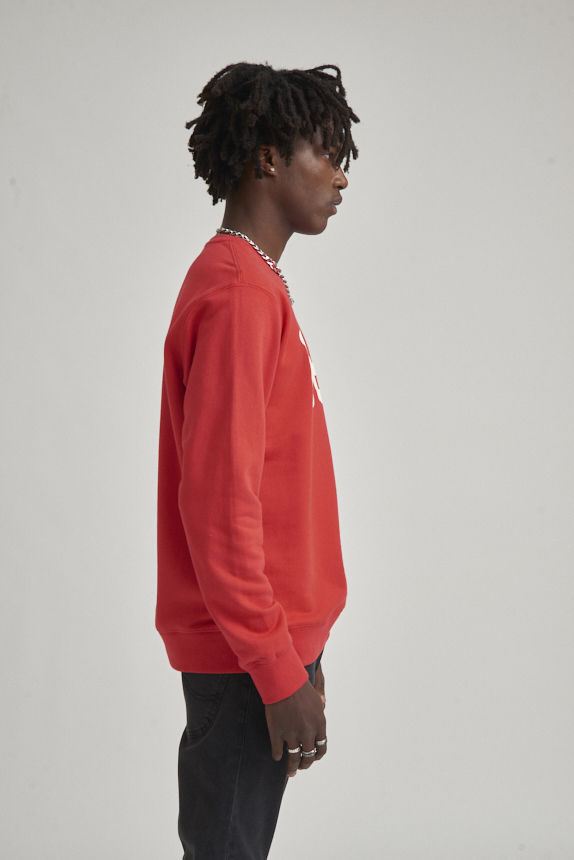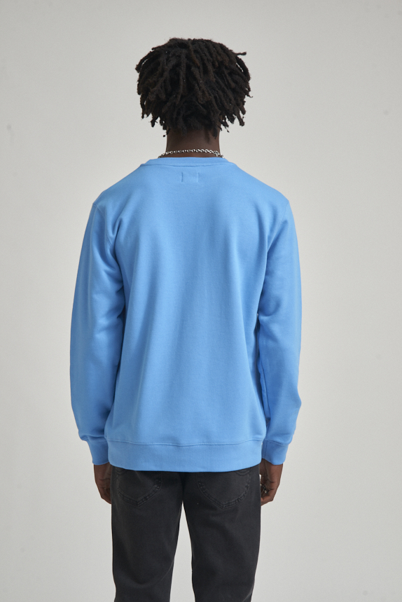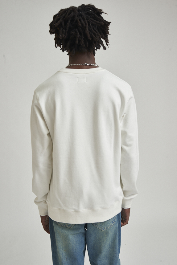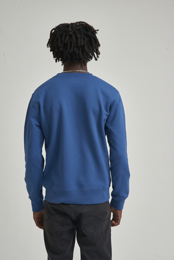 Buzo de calce clásico confeccionado en tejido rústico de algodón. Cuello redondo, puños y cintura con ribb a tono. El modelo mide 1.78 y usa talle M.
