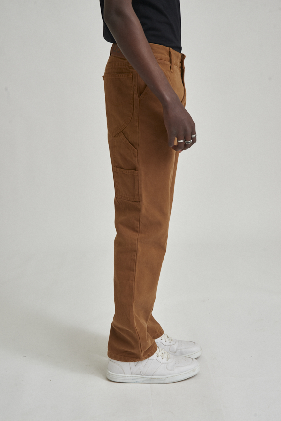El clásico estilo utilitario se reinventa para marcar tendencia. Este pantalón de carpintero combina diseño funcional con un enfoque en la moda contemporánea. El modelo mide 1.78 y usa talle 28.