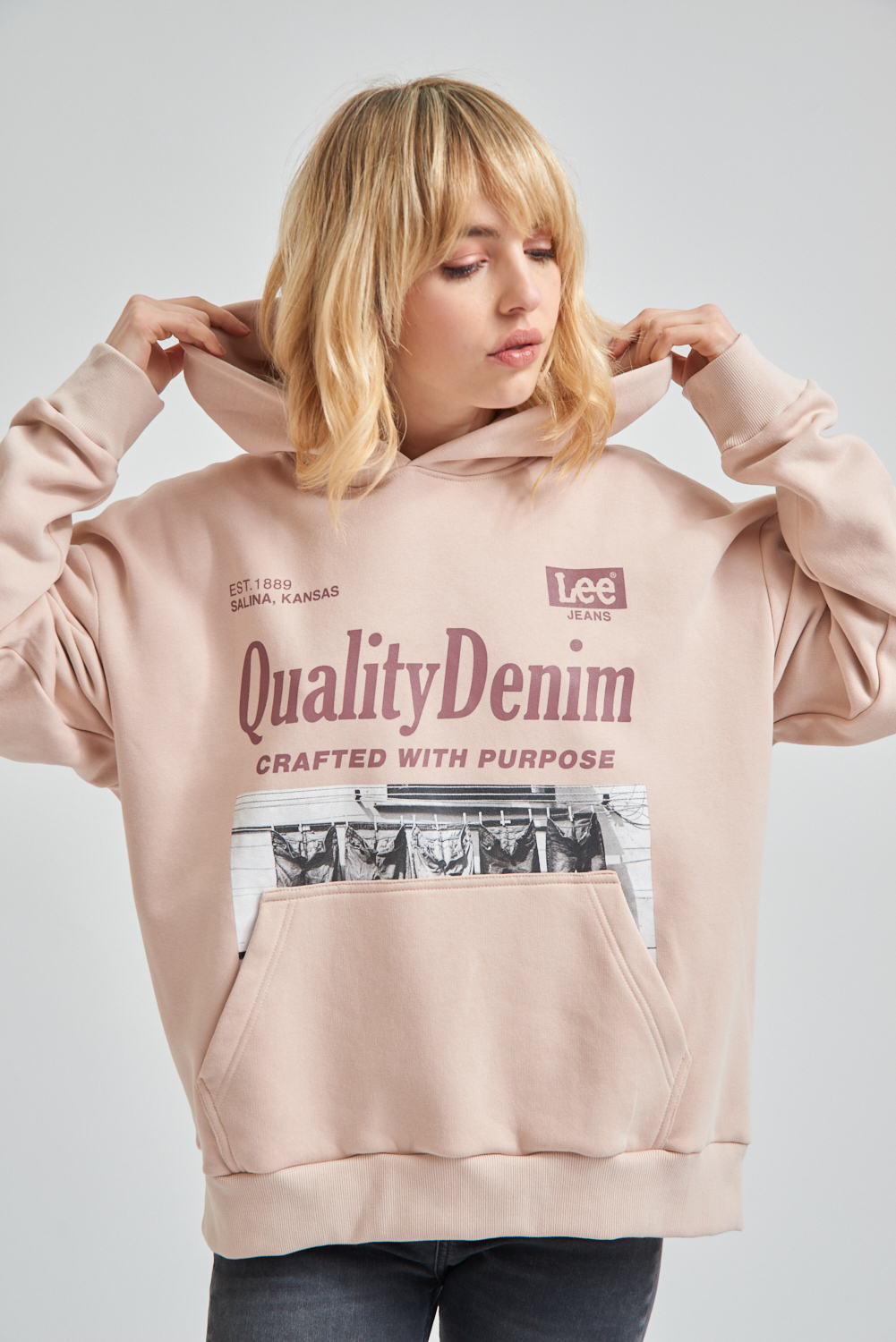 Buzo canguro, fabricado con algodón y elastano, con estampa frontal.