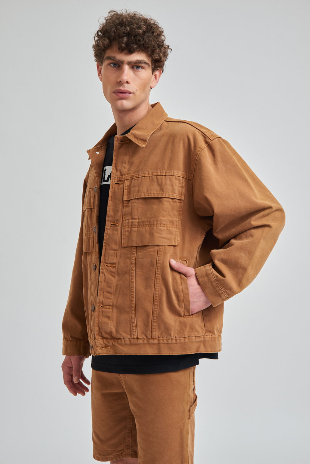 Campera corte moderno relaxed, diseño moderno. Confeccionada en canvas resistente. El modelo mide 1.85 y usa talle M.