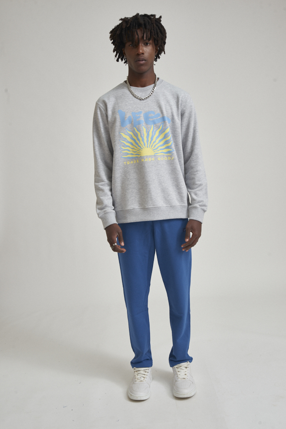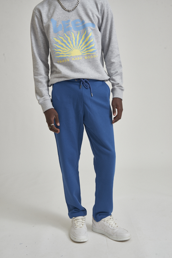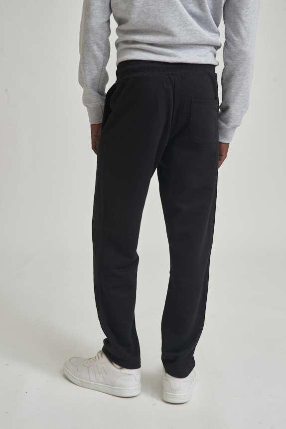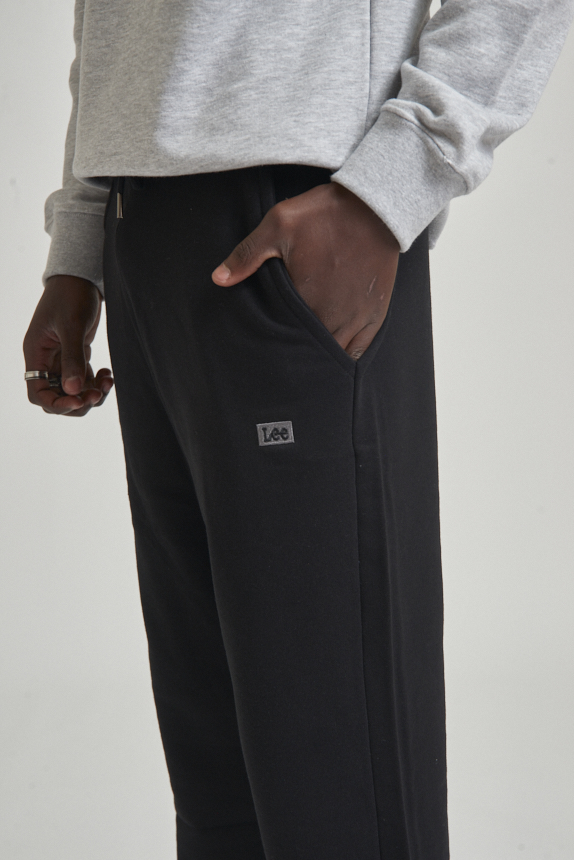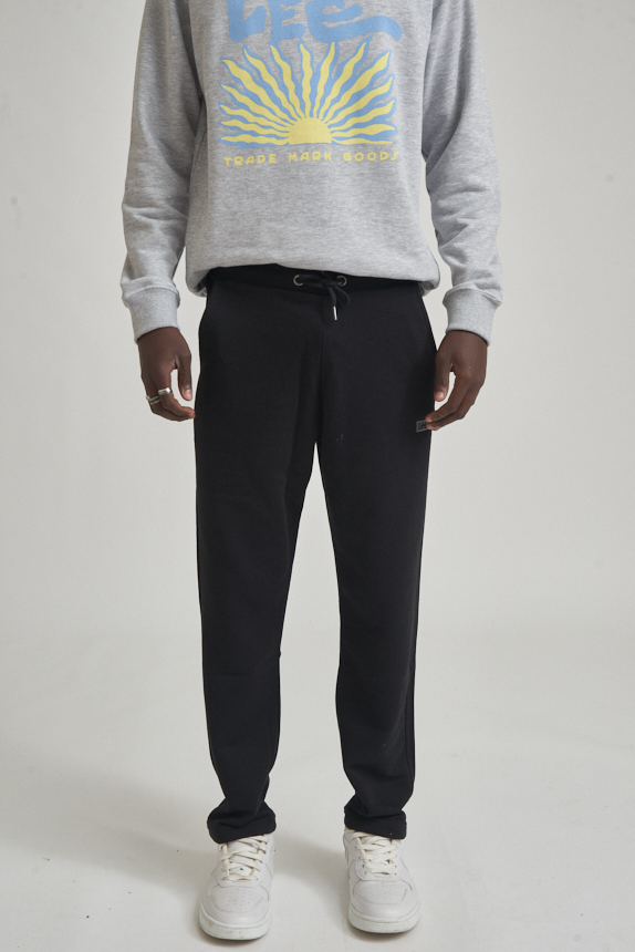Pantalón jogging de calce recto, confeccionado en tejido rústico de algodón. Cintura elastizada con cordón ajustable. El modelo mide 1.78 y usa talle S.