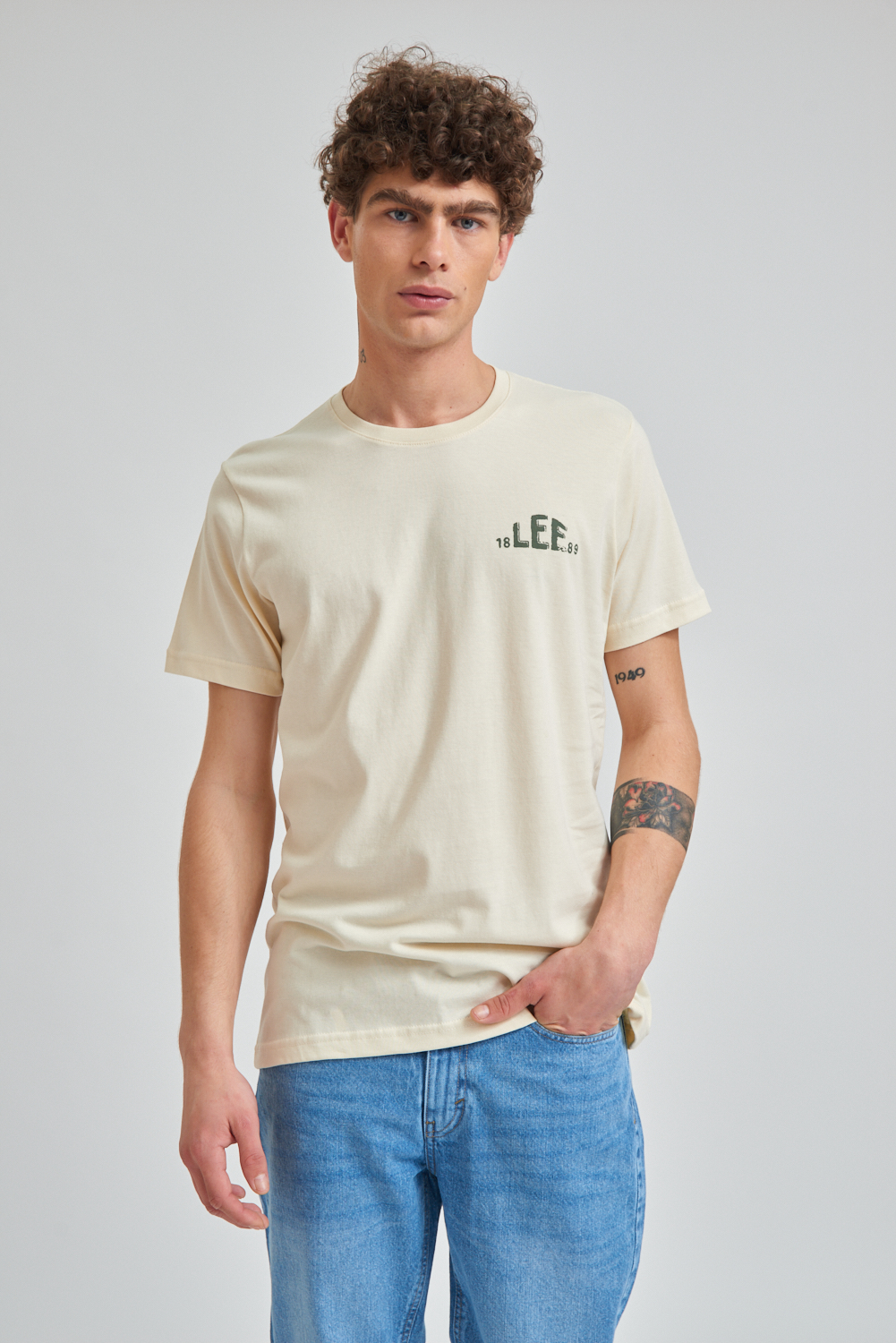 Remera de manga corta estampada, calidad y confort con un diseño moderno. El modelo mide 1.85 y usa talle M.