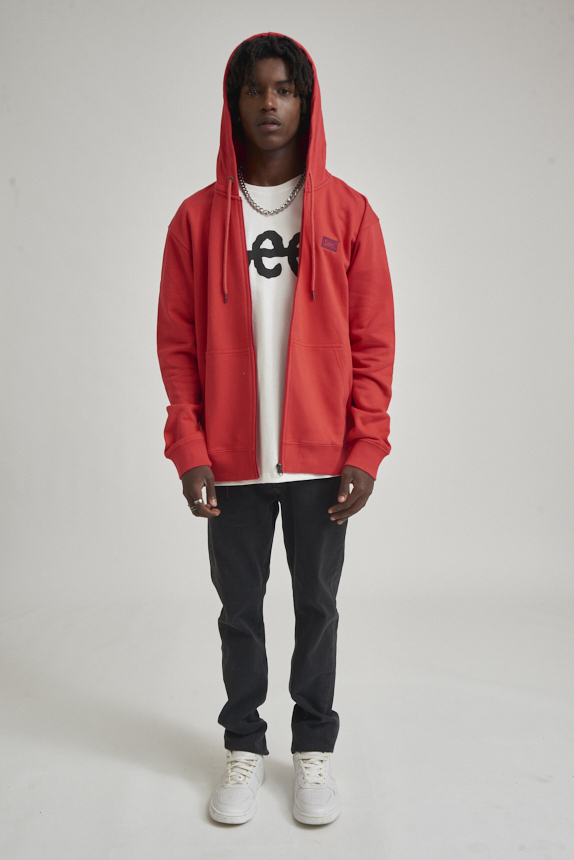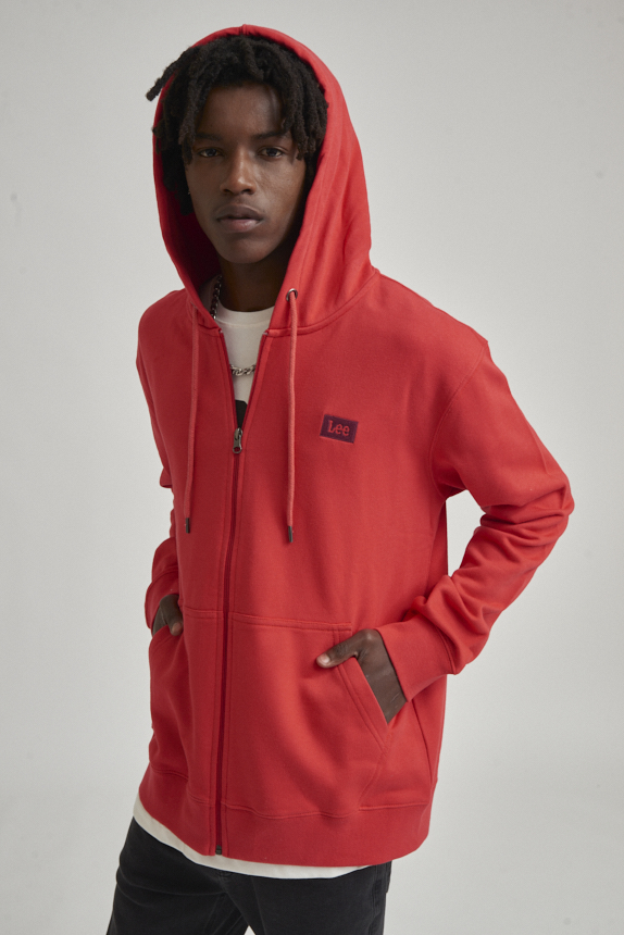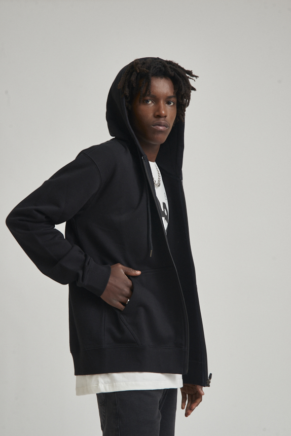 Campera liviana confeccionada en rústico de algodón. Cierre frontal completo, bolsillos laterales y capucha. Terminaciones en ribb y calce relajado El modelo mide 1.78 y usa talle M.